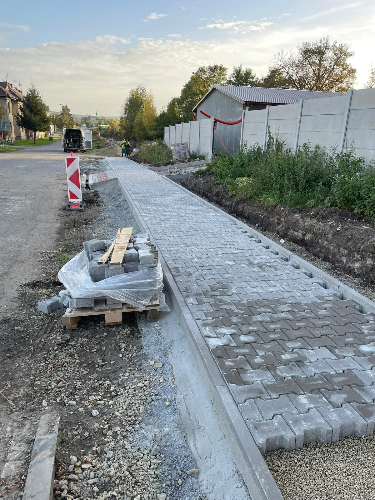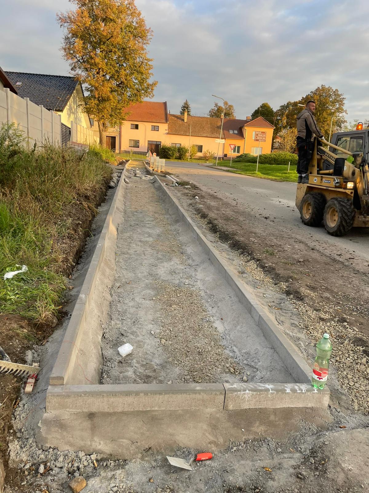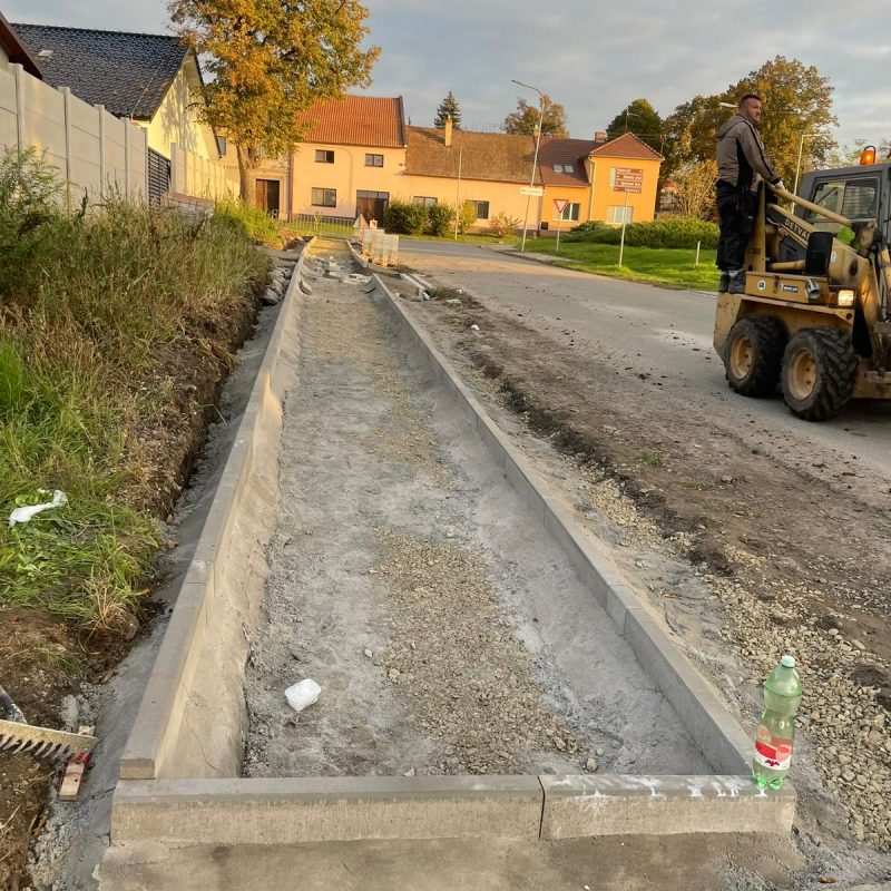 Při pracích byl kladen důraz na přesnost provedení, dodržení výškových a směrových parametrů i plynulý průběh stavby za provozu. Nově vybudovaný chodník přispívá k lepší infrastruktuře obce a dlouhodobě bezpečnému užívání.