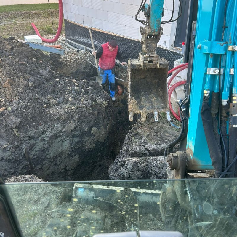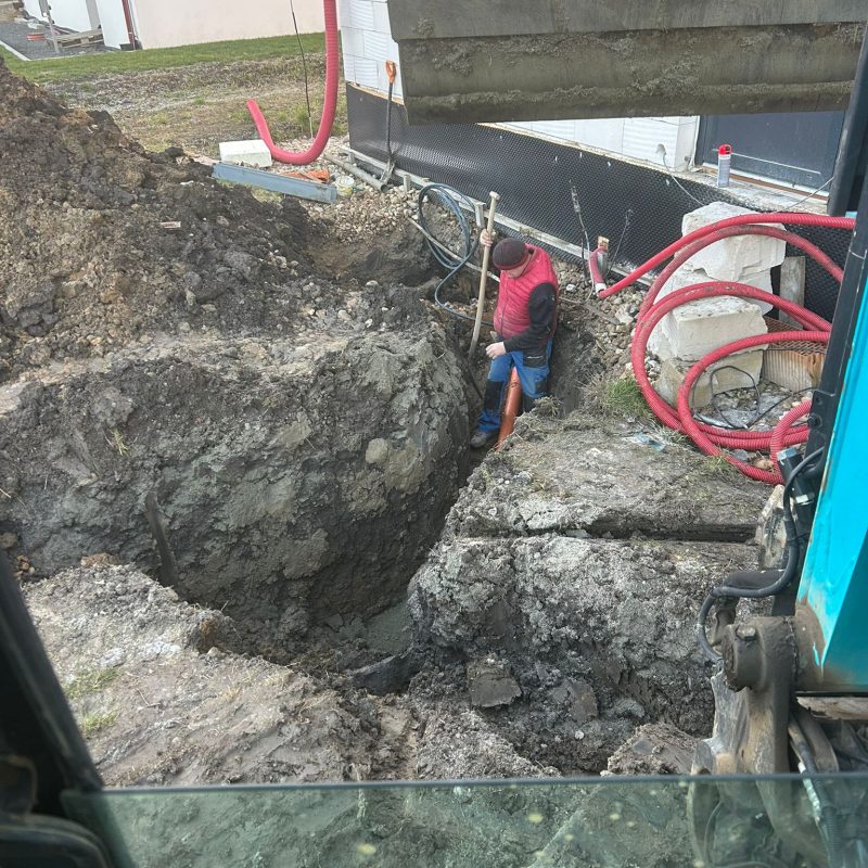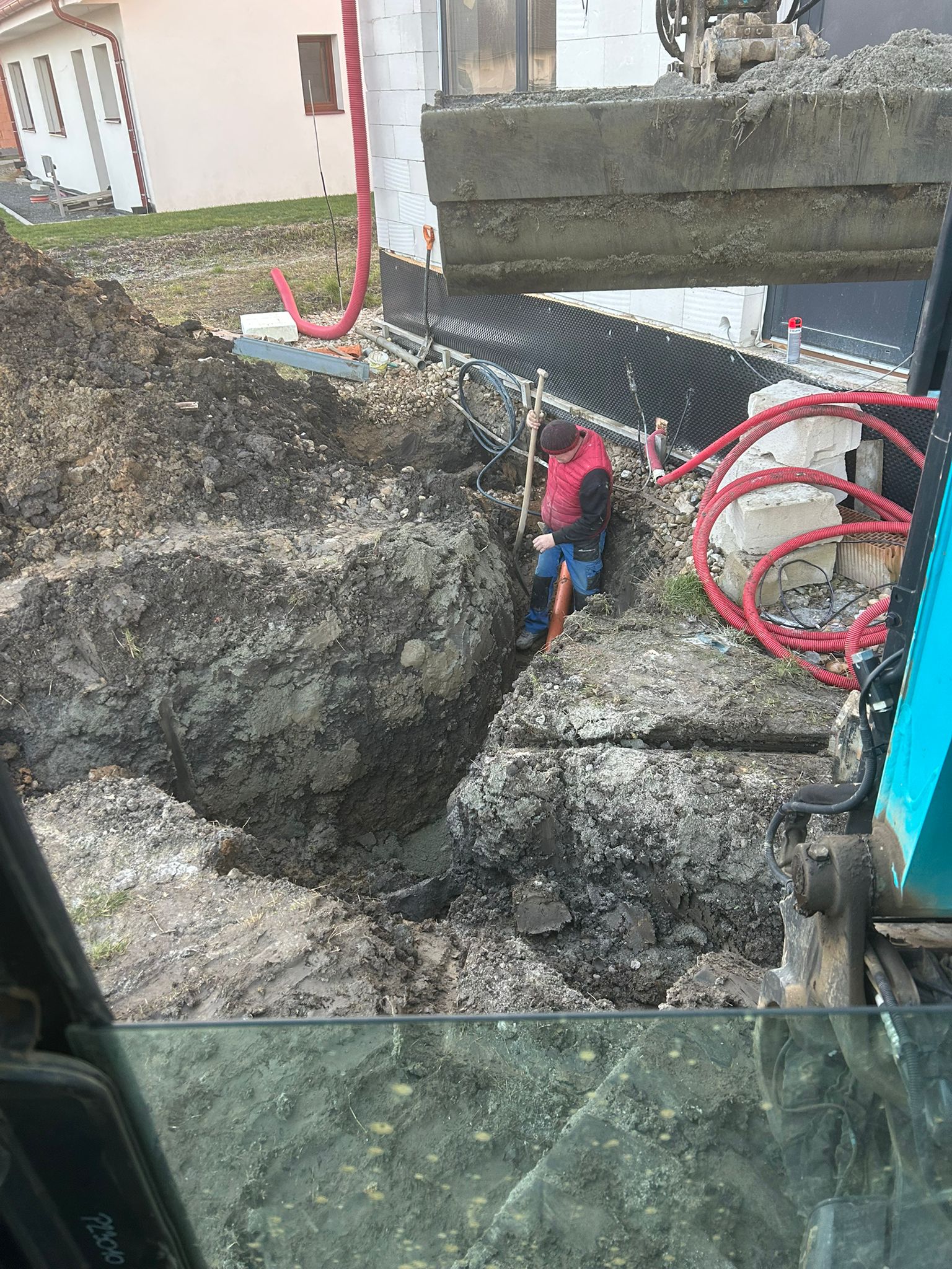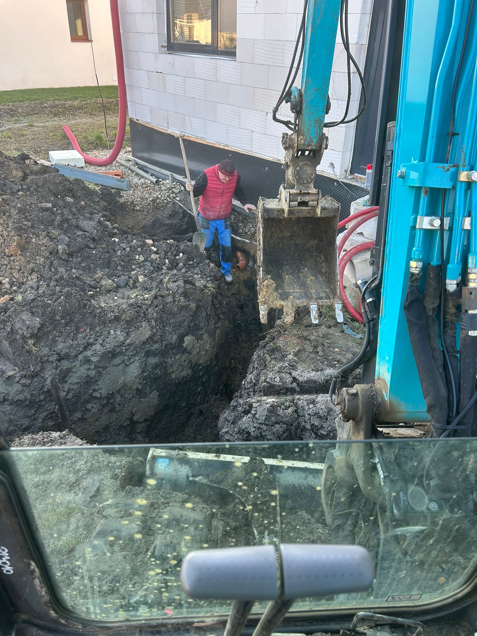 V rámci této realizace jsme provedli zřízení kanalizační přípojky včetně potřebných zemních prací a přípravy podloží. Součástí zakázky byla pokládka potrubí, jeho správné uložení a napojení na stávající kanalizační síť. Po dokončení montáže byl výkop zasypán, zhutněn a povrch uveden do původního stavu tak, aby bylo zajištěno bezproblémové a dlouhodobé fungování přípojky.